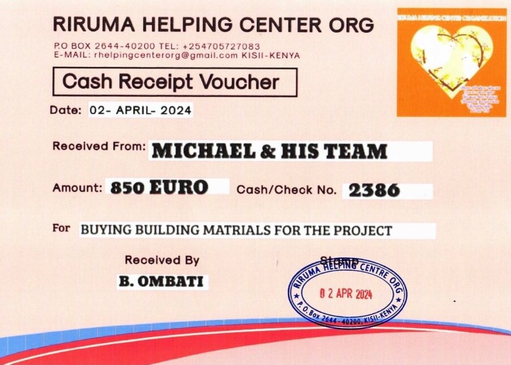 Das RIRUMA HELPING CENTER bedankt sich für die Spende. Die Großzügigkeit bedeutet Ihnen und der Gemeinschaft, der sie dienen, alles.